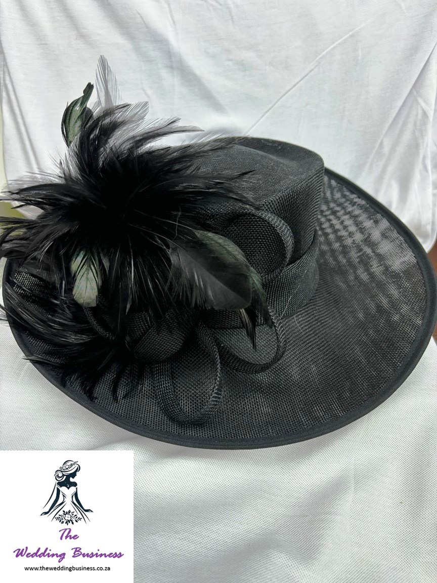 Introducing the exquisite Black Feather Wedding Hat, a stunning accessory designed to elevate your bridal ensemble.